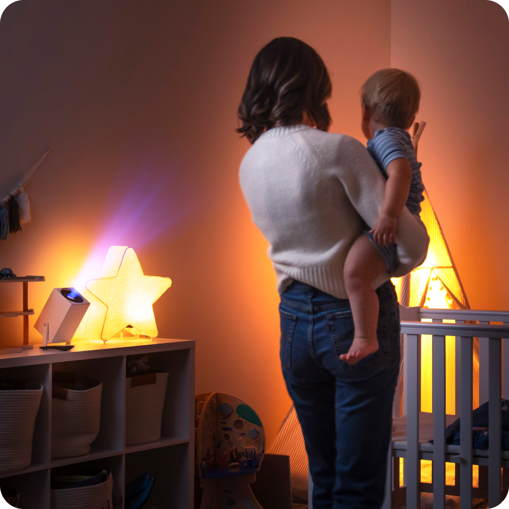 Thoughtfully designed hardware with gentle lighting and calming sounds that create the perfect bedtime atmosphere.
